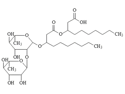 | (1)Di-Rhamnolipid(Rha-Rha-C10-C10) | (2) Mono-Rhamnolipid (Rha-C10-C10) |