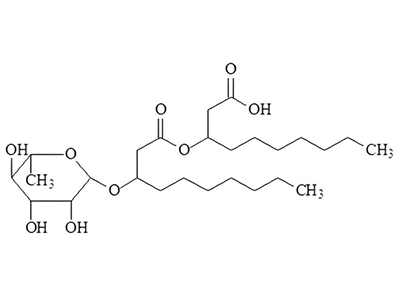 Rhamnolipids are composed of hydrophilic sugar groups and hydrophobic fatty acid chains. This amphiphilic structure enables it to reduce surface tension and interfacial tension.